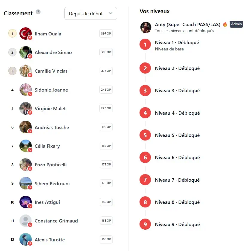Chaque action que tu réalises dans la Promo te permet de gagner des points de progression pour débloquer des niveaux.